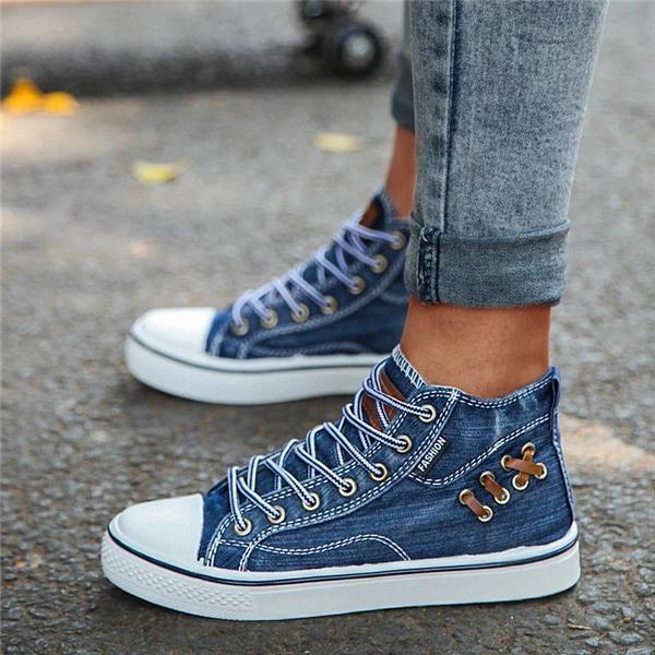 widefiling Unisex High Top Canvas denim canvas shoes