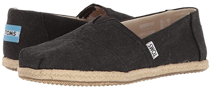 Rope (Black Washed Canvas Rope Sole toms black washed canvas women's espadrilles