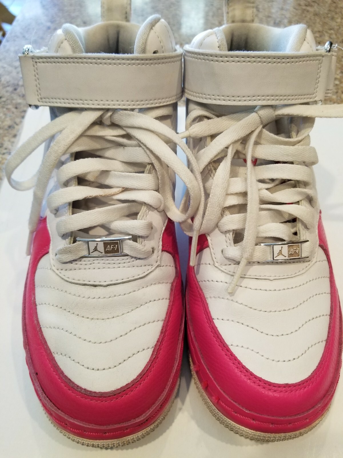 white and pink nike high tops