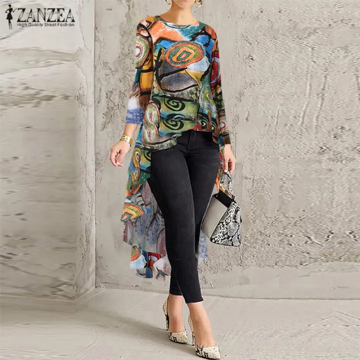 ZANZEA Womens Summer Bohemian Printed high low summer tops