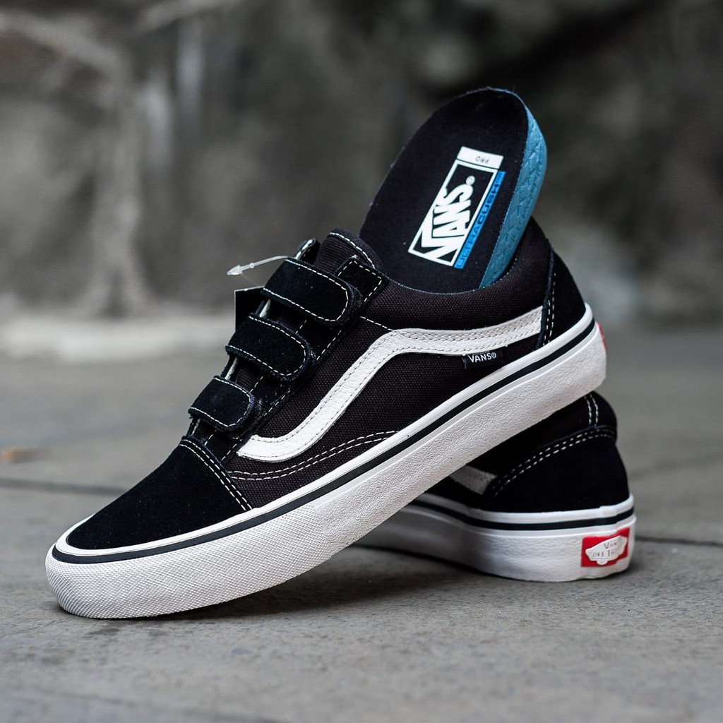 vans old skool velcro pro black white