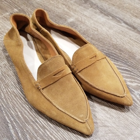 Zara Brown Suede Pointed Toe Penny pointed toe penny loafers