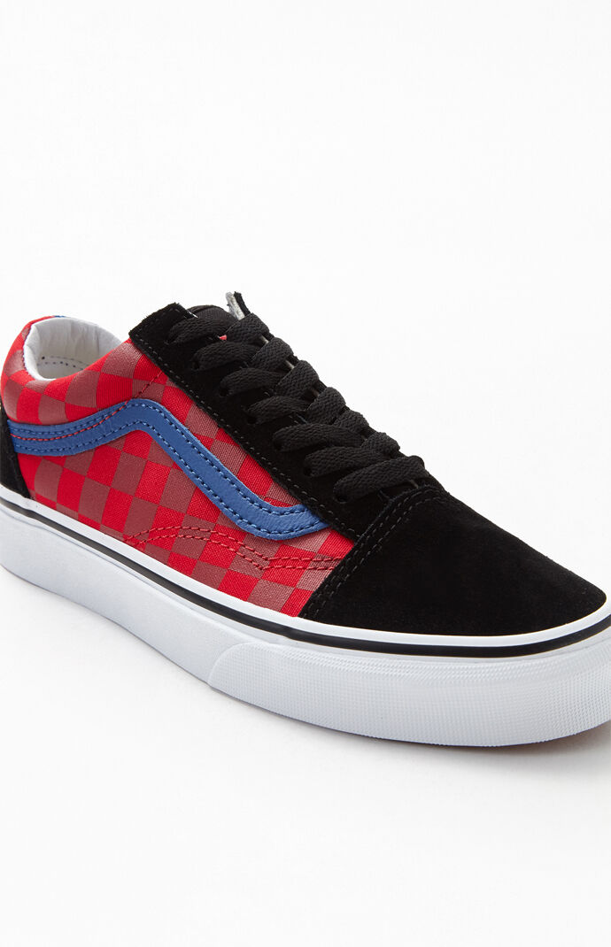 vans old skool otw rally red & blue checkerboard skate shoes