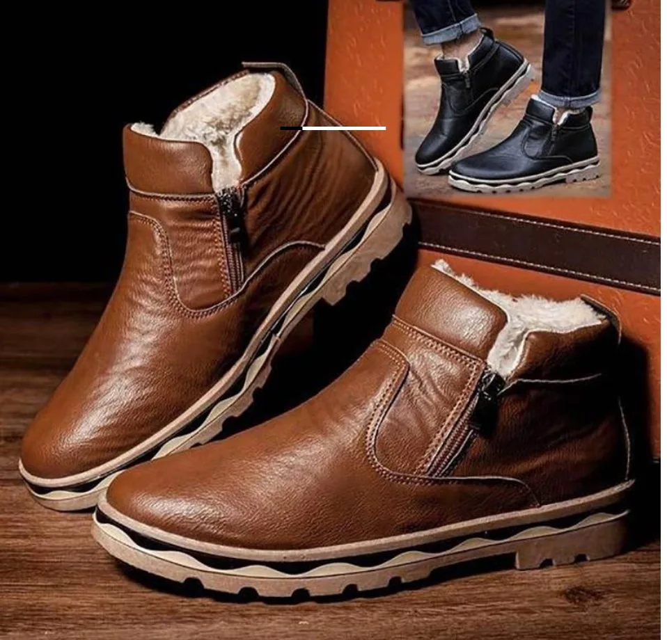 Men Winter Warm Boots PU Leather Solid mens low winter boots