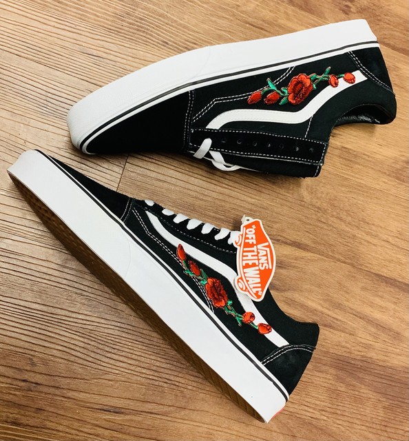 Black VANS Old Skool Red Rose Custom rose custom vans