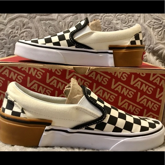 cream checkered slip on vans