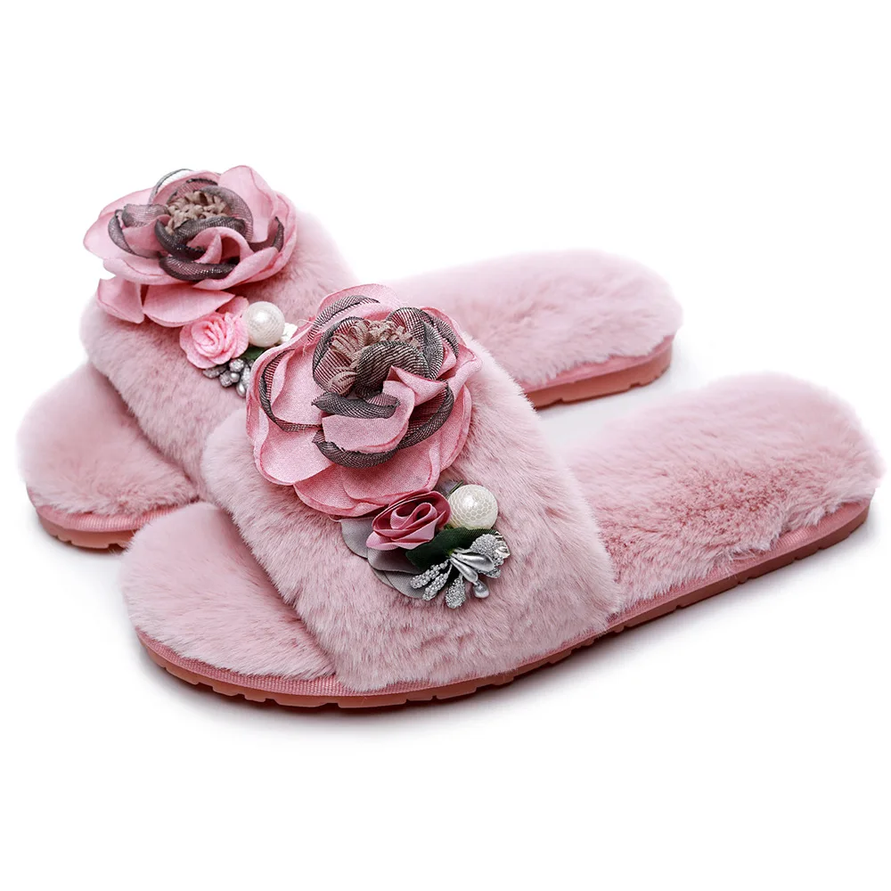 Ladies Home Fluffy Slippers Women Fur female designer slides