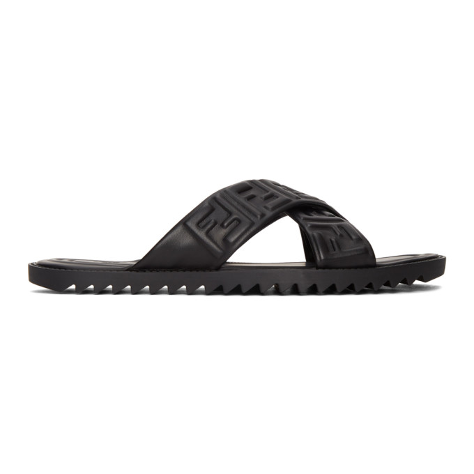 Black Leather 'Forever Fendi' Slides by fendi forever slides