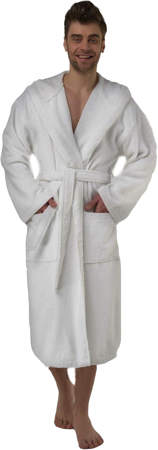 Premium White Hooded Terrycloth mens white terry cloth bathrobe