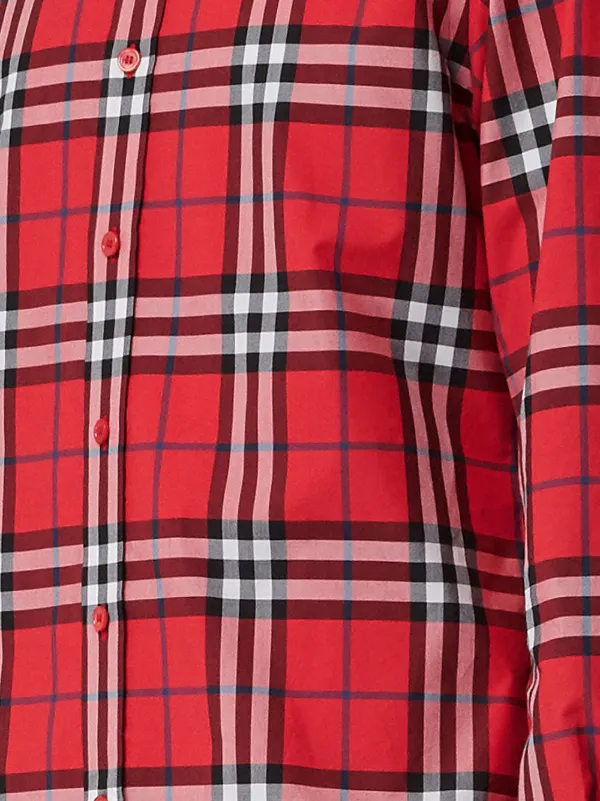 Shop red Burberry Vintage Check Cotton burberry vintage check cotton poplin shirt