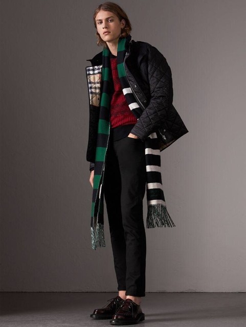 New Burberry Color-Block Striped Wool burberry wool and cashmere scarf
