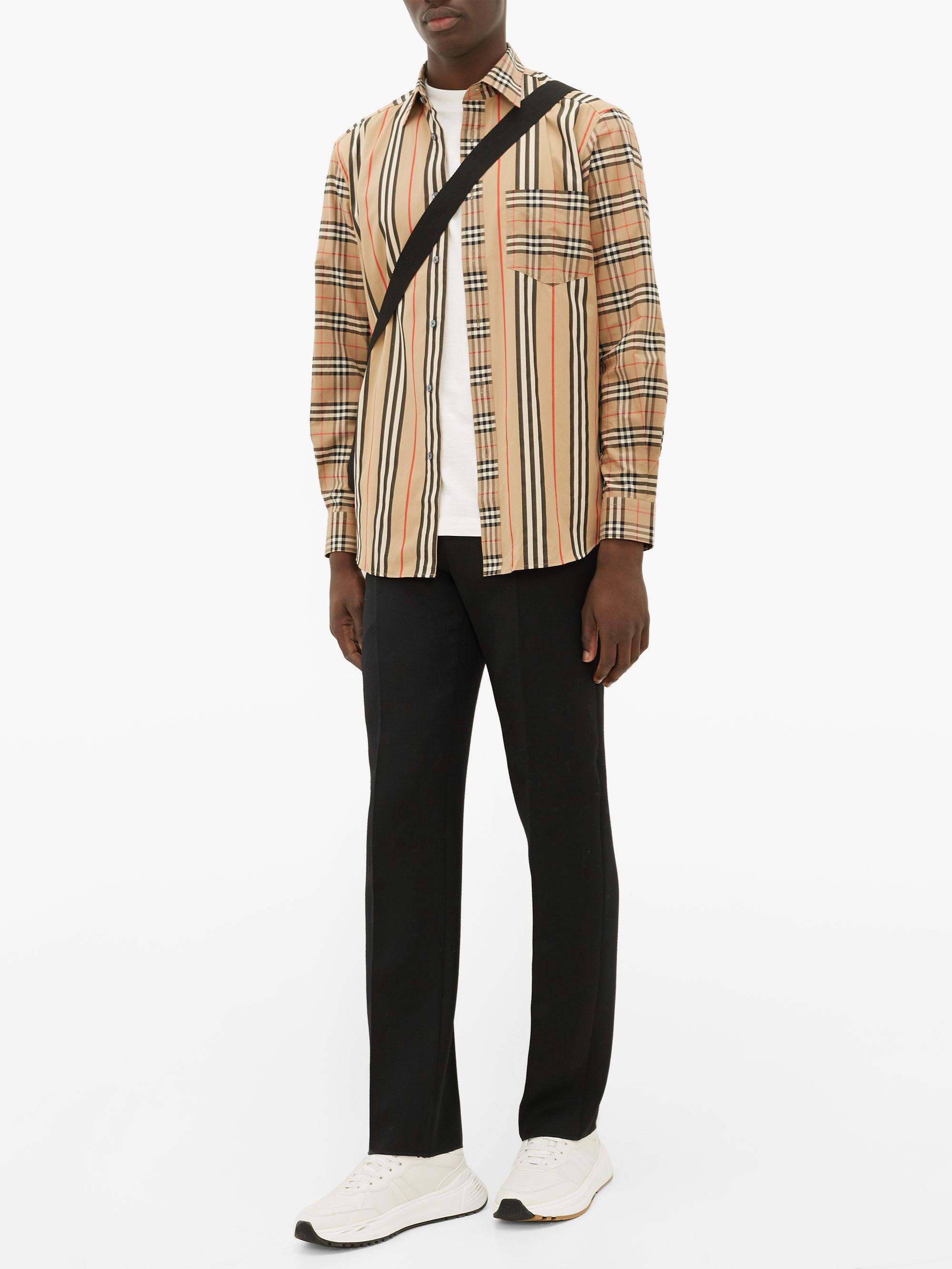 Burberry Checked Striped Cotton-poplin panelled vintage check and icon stripe cotton shirt