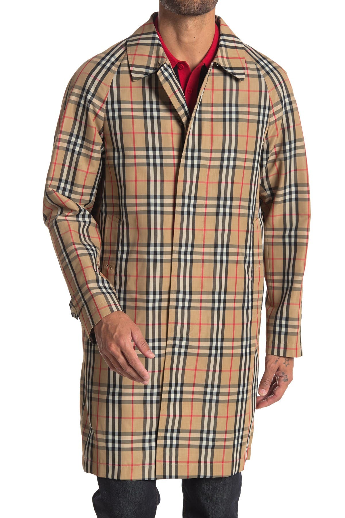 Vintage Check Nylon Belted Car Coat in vintage check coat