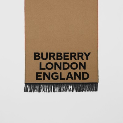 Love and Logo Wool Silk Jacquard Scarf beige burberry