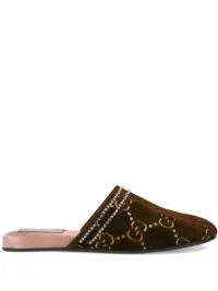 Shop brown Gucci GG velvet slippers gucci velvet fur slides