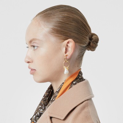 Resin Pearl Ring Gold-plated Hoop burberry hoop earrings
