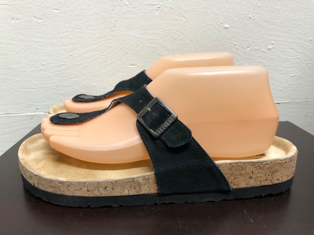 Skechers Black Suede Thong Slide skechers granola pyramids