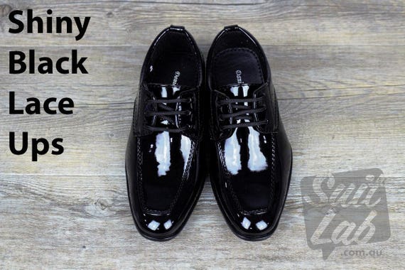 SUIT LAB Boys Formal Black Patent Shiny page boy shoes australia
