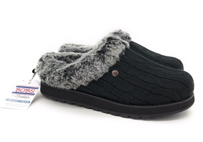 SKECHERS BOBS Size 7W Black Knit Faux skechers outdoor slippers