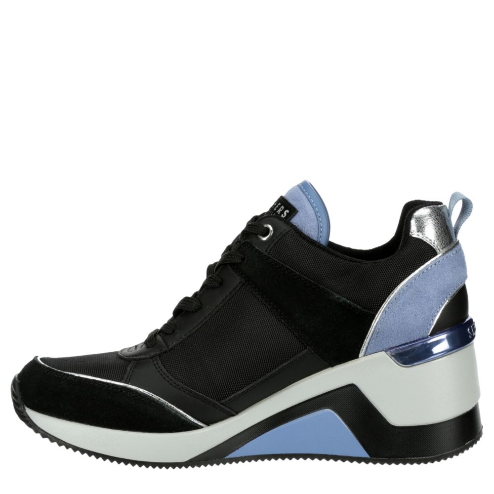 Black Skechers Womens Million Air High women's million air wedge sneaker