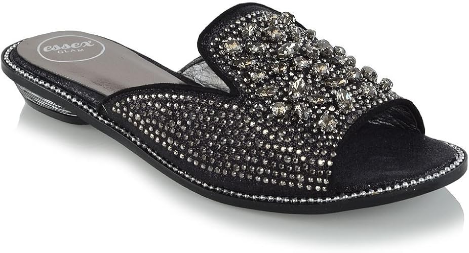 Womens Slip On Sandals Low Heel Slider sparkly mules shoes