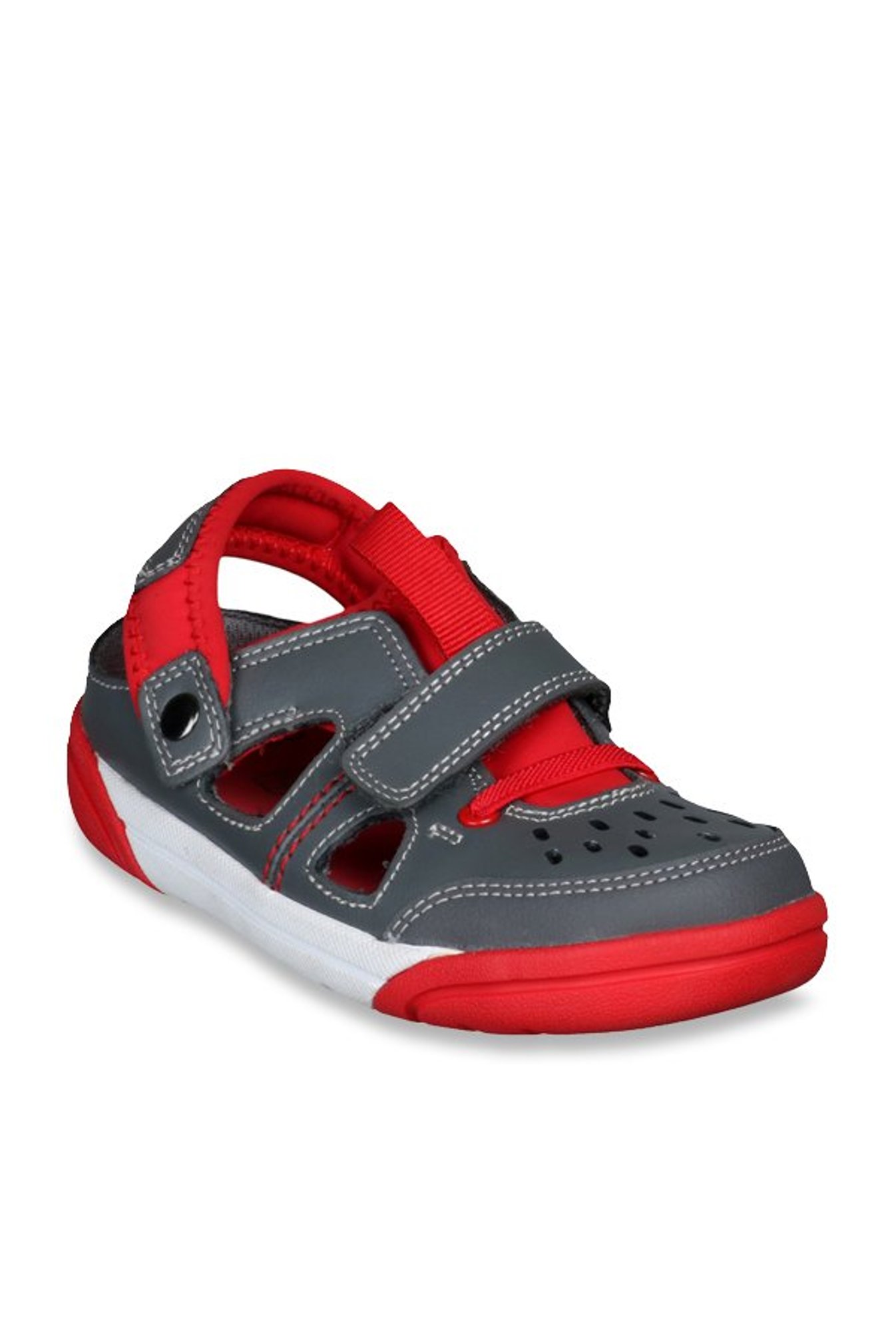 Clarks Kids Dark Grey \u0026 Red Sling Back clarks sandals kids grey