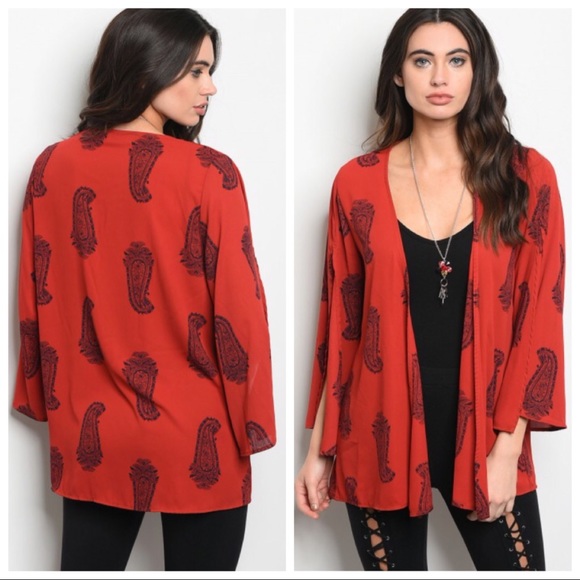 red kimono cardigan