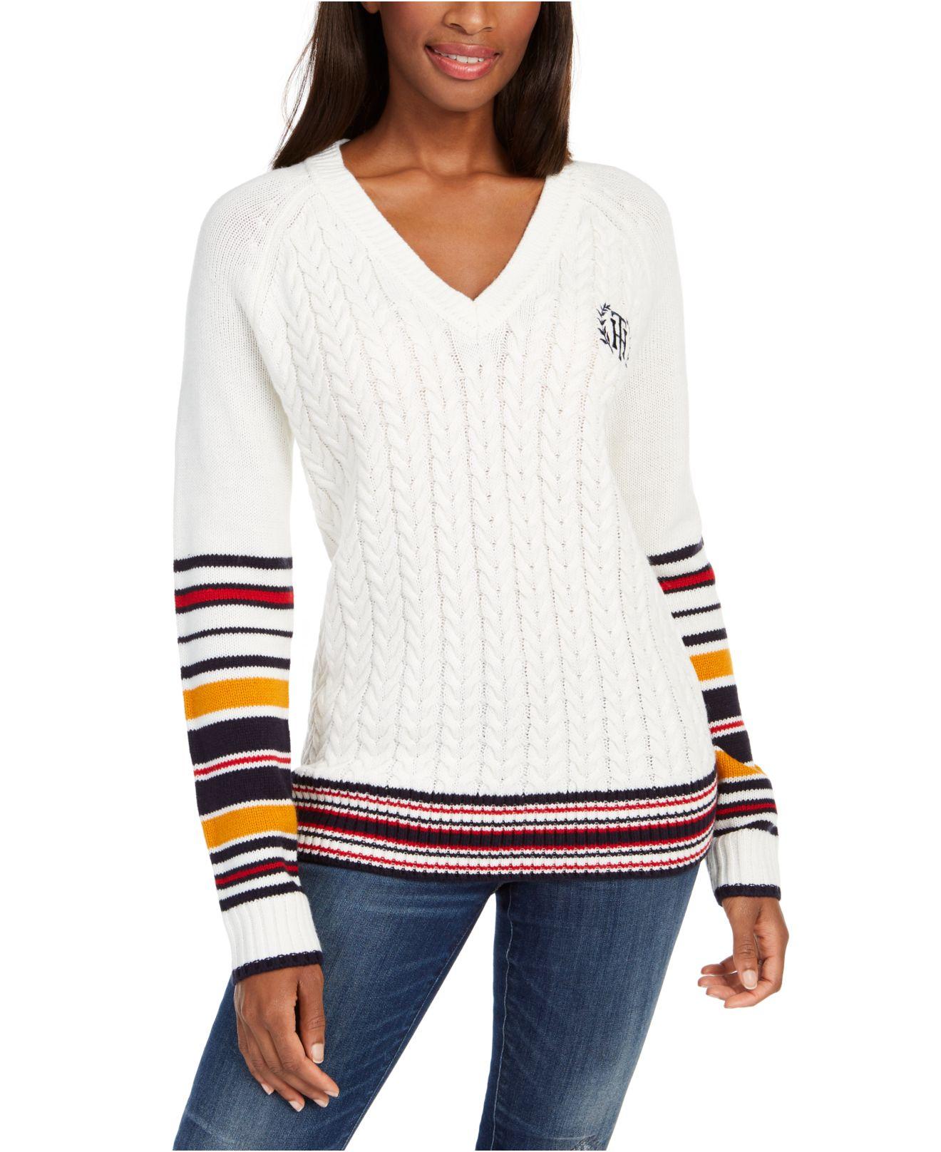Tommy Hilfiger Synthetic Varsity Stripe macys cable knit sweater