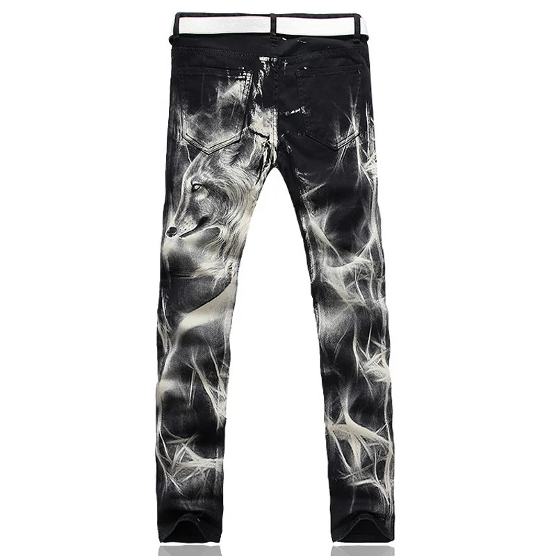 2021 New Men's fashion wolf printed printed jeans mens