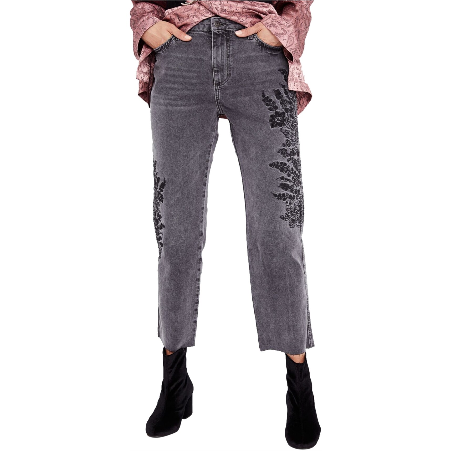 Womens Embroidered Cropped Jeans, Grey free people grey jeans