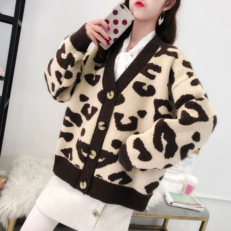 Women's Leopard Knitted Thick Sweater long thick sweater cardigan