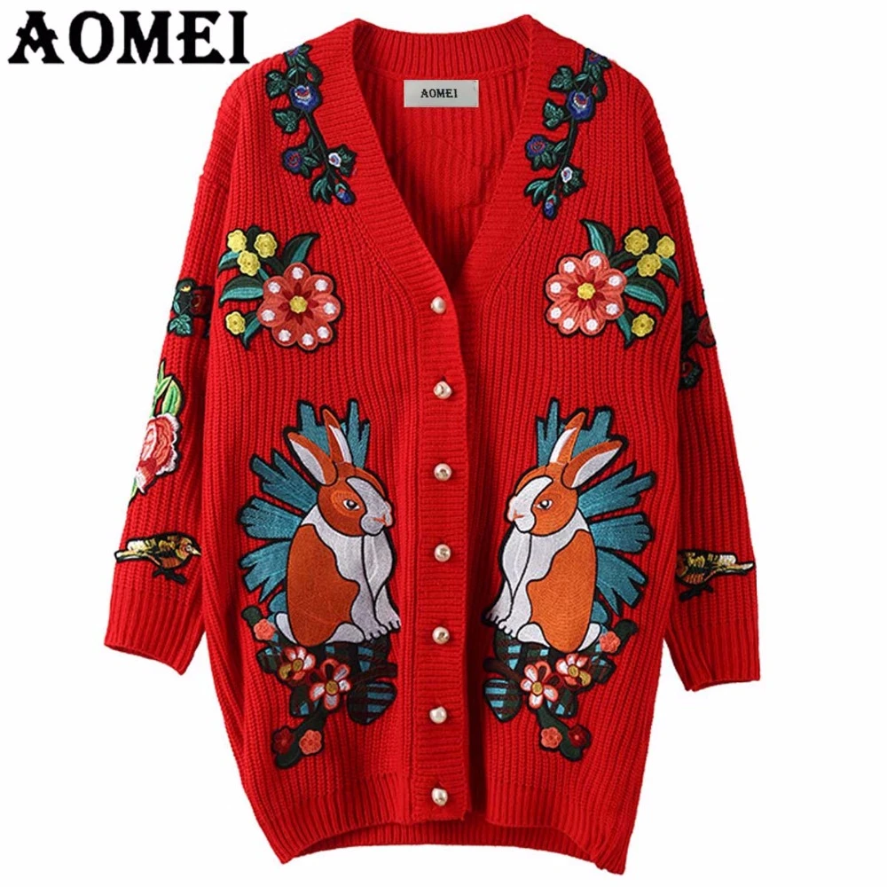 Women Long Cardigans Jumper Embroidery long thick sweater cardigan