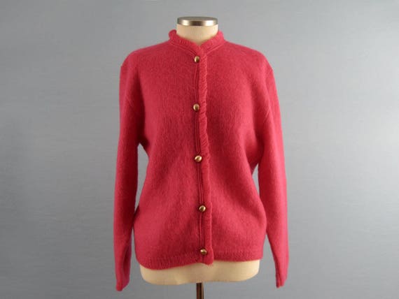 1950s Cardigan Sweater / 50s Wool raspberry pink cardigan