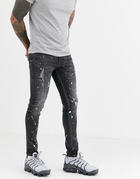 Asos Design Super Skinny Jeans In grey paint splash jeans