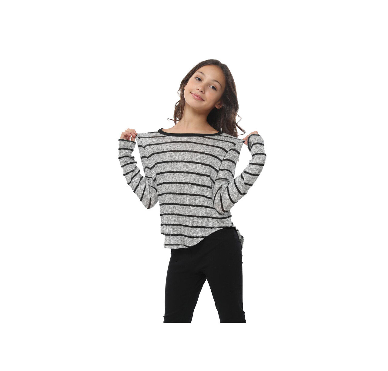 Black Combo Striped Sweater with striped long sleeve sweater