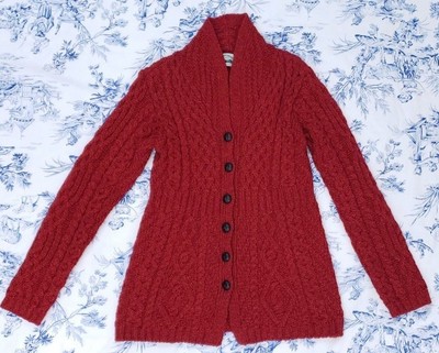 MS\u0026Co Aran Carfts Red Orange Button red aran cardigan