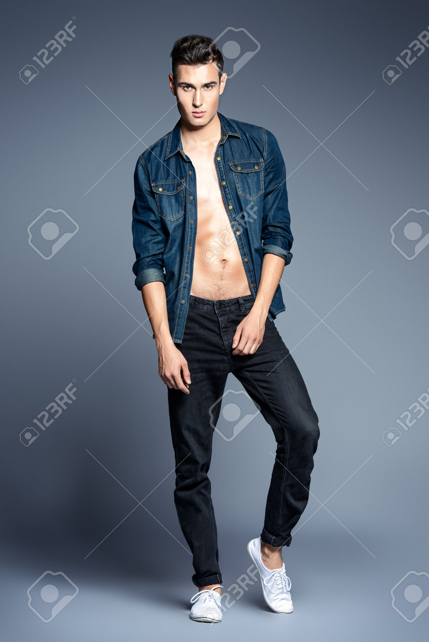 Man Wearing Casual Jeans Clothes studio mens jeans