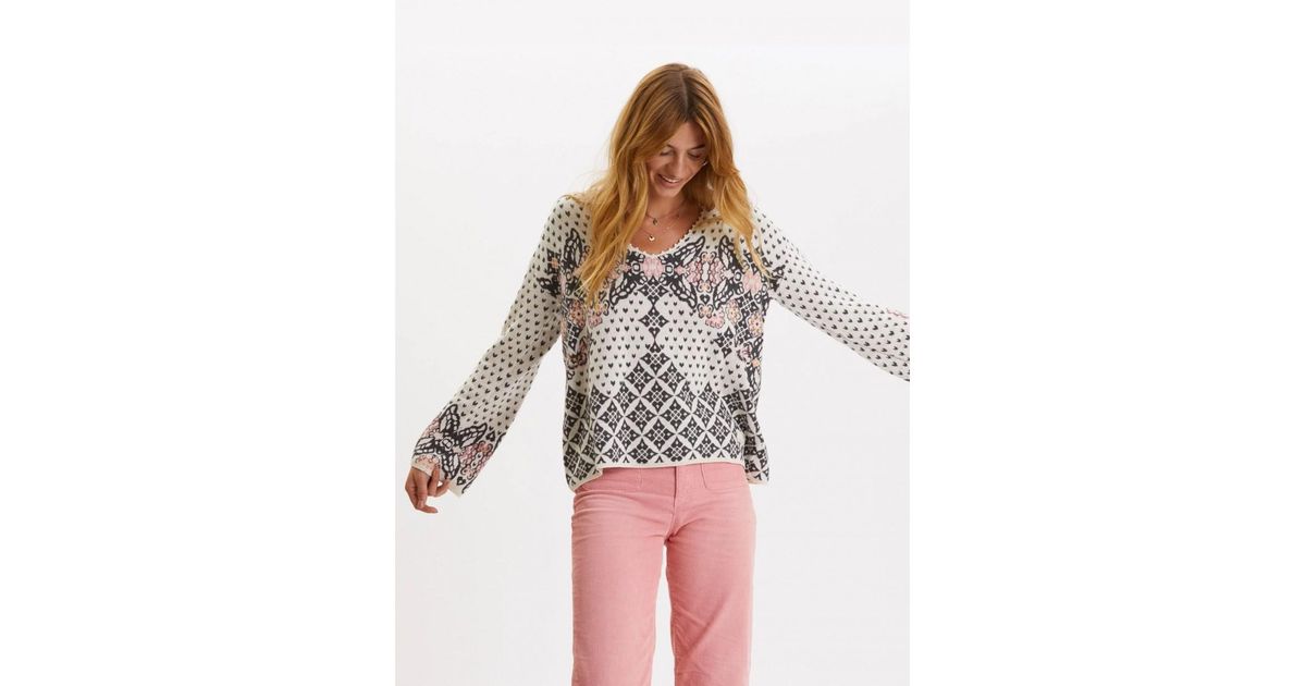 Odd Molly Denim V Neck Printed Jumper odd molly entanglement cardigan