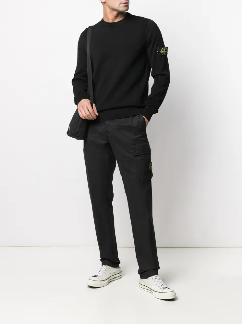 Stone Island logo-patch knitted jumper stone island black knitted jumper