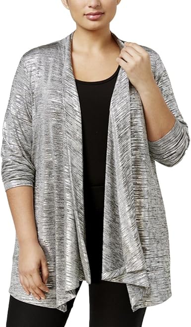 Calvin Klein Women's Plus Size Flyaway silver metallic cardigan womens