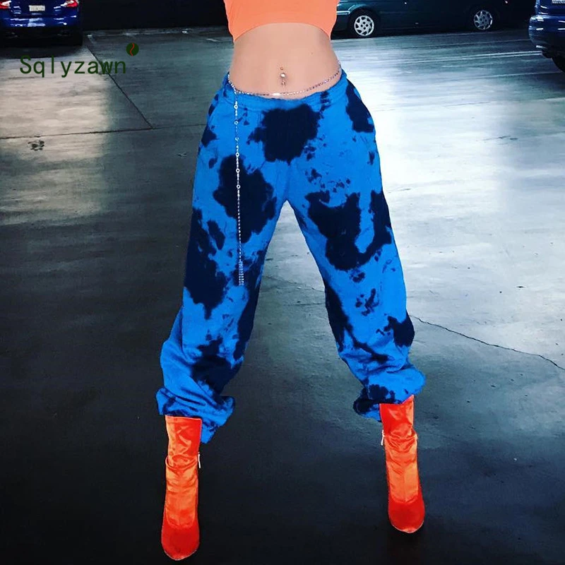 Streetwear Cargo Pants Women Casual blue and yellow joggers
