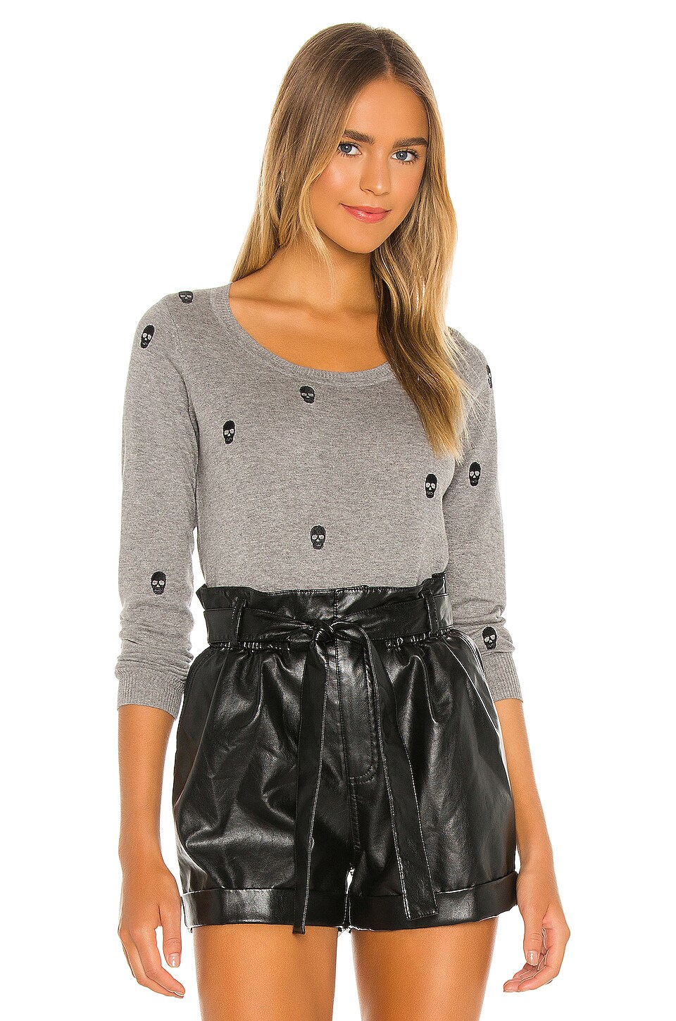 Chaser Skulls Long Sleeve Crew Neck spell heather long knit cardigan