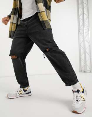 Relaxed fit jeans with ripped legs black ripped jeans loose fit