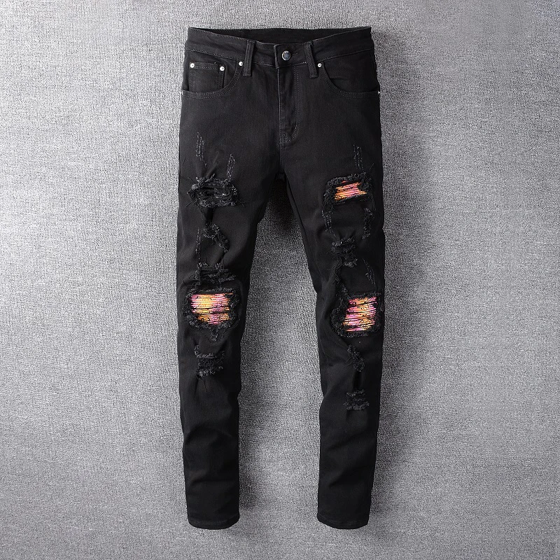 Fashion Streetwear Men Jeans Black black destroyed jeans mens