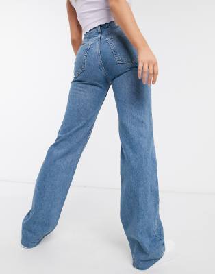 Pull\u0026Bear raw hem wide leg jeans in wide leg raw hem jeans
