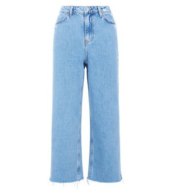 Light Blue Raw Hem Wide Straight Leg