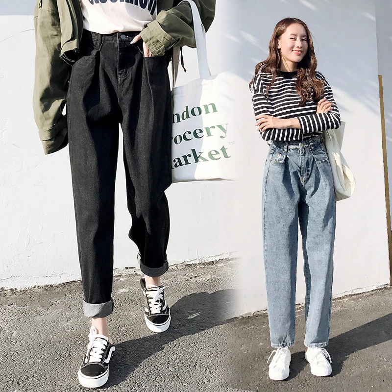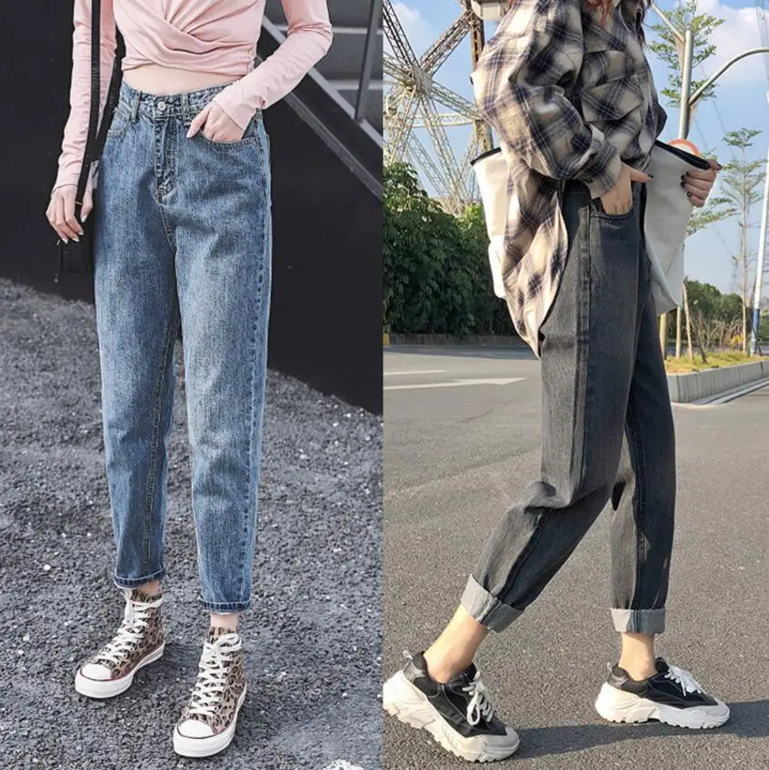 2019 Fashion High Waist Boyfriend Jeans plus size mom jeans black