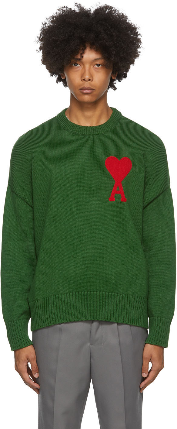 Green Ami De Coeur Crewneck Sweater ami crew neck sweater
