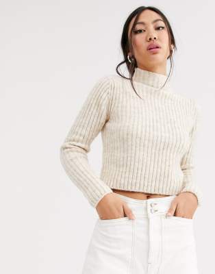 Monki high neck crop jumper in beige high neck beige jumper