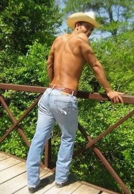 Shirtless Male Muscular Cowboy Hunk tight cowboy jeans